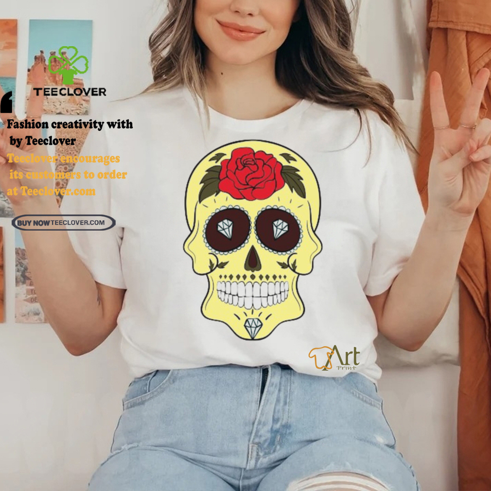Best Yellow Sugar Skull Diamond and Rose T Shirt