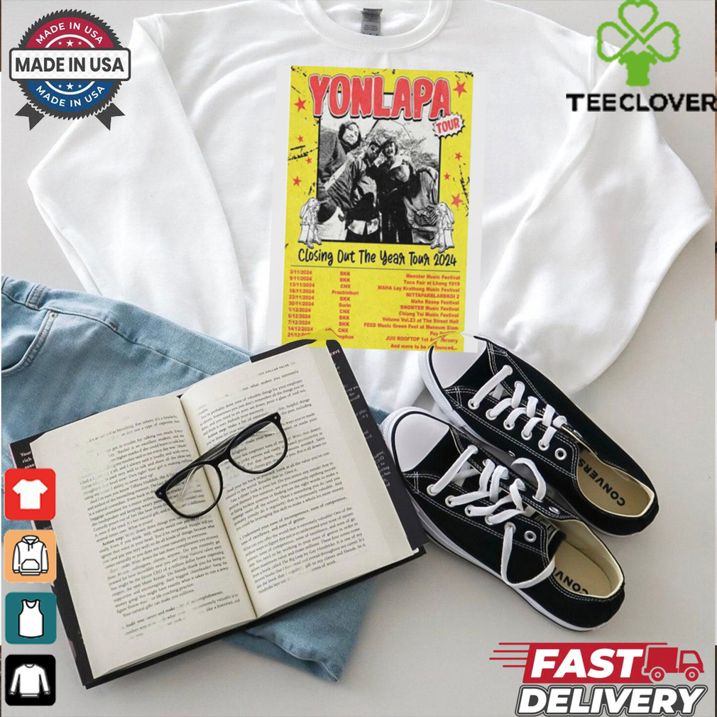 Well, I got stuck into the security office and had to wait for the Yonlapa Closing Dut The Year Tour 2024 Shirt . This was in a time before cell phones were common, and these guards werenโt going to let me go anywhere. I canโt imagine my girl being particularly happy when she got out of the dressing room and found all of her bags unguarded on the ground, let alone the fact that I just saw her mostly naked, with a bunch of other women as well.