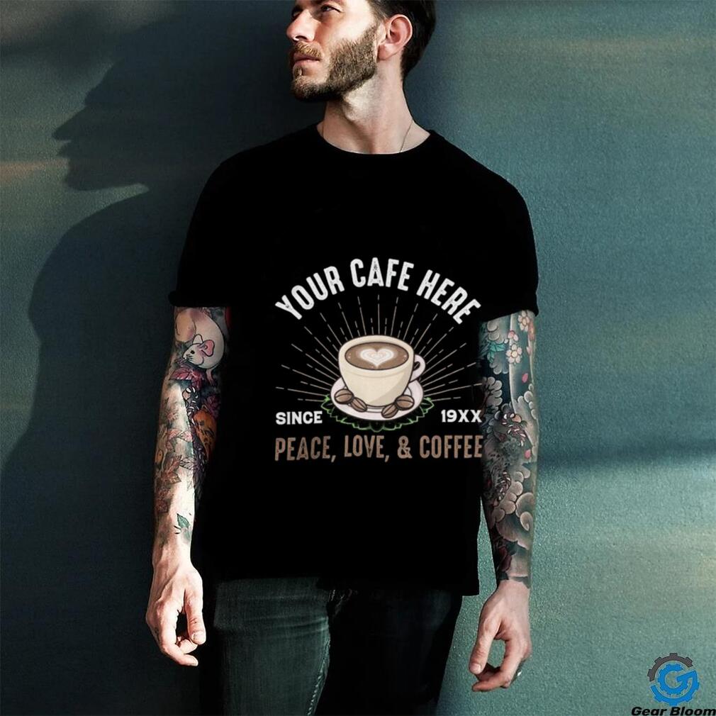 ()Your Cafe Here Since Peace shirt. Categories of this T-shirt is teejeep, Your Cafe Here Since Peace shirt from Dadyshirt ✓ Unique designs ✓ Large assortment ✓ Comfortable ✓ High-quality ✓ Easy to care for ✓ Available in a range of colours and styles for men, women ✓ Shop now ✓
