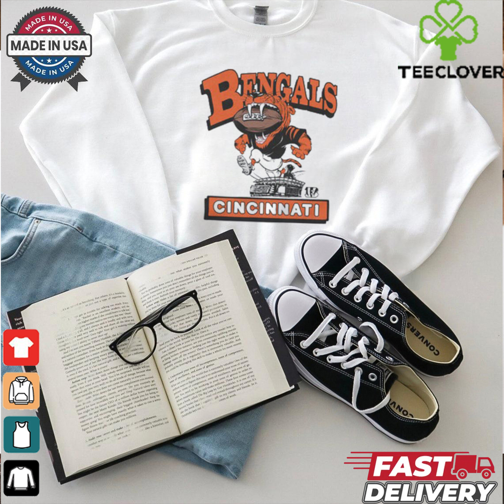 As you may view, expert t t-shirt message layout is Youth Cincinnati Bengals Mascot Stadium shirt definitely only a concern of developing content that certainly not just assists your notification, yet additionally provides it in a manner that is actually creatively well balanced and also perfectly spaced. Through correctly using these t tee style pointers, your t tee content are going to be actually a lot better to consider, less complicated to check out, as well as kilometers in advance of all those amateur t tee shirt styles attacking the market place. And also, very most essentially, your comical t tee layouts are going to ultimately be actually hilarious in an excellent way.