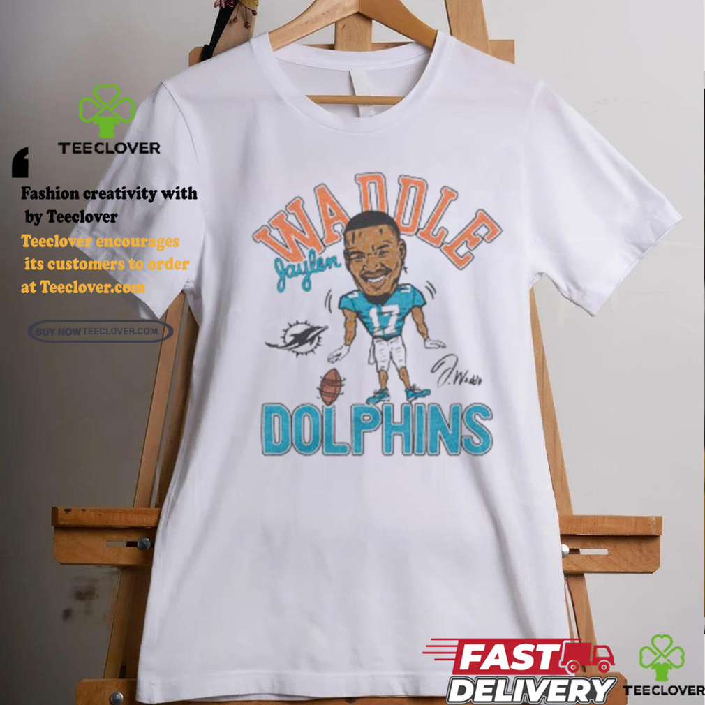 As a galaxy forms, a random Youth Dolphins Jaylen Waddle Signature shirt of matter in space coalesces into a disk, or some other elongated and curved form. This process can be thought of akin to a ballet dancer tucking in her arms and legs as she spins, resulting in her spinning much faster. In classical mechanics, ignoring all relativistic effects and nonlinear terms, this can be described simply as follows. Moment of inertia, the quantity relating to how hard a force has to try to rotate an object, increases as an the matter becomes more central due to its own gravitational attraction. This, by conservation of energy, the angular velocity must increase proportional to the square root of the decrease in moment of inertia. All in all, this phenomenon happens in many ways right in front of you every day, however galaxies boast a much more grandiose scale than we are akin to conceptualizing.